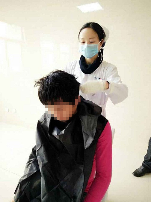 “白衣天使”變身理發(fā)師