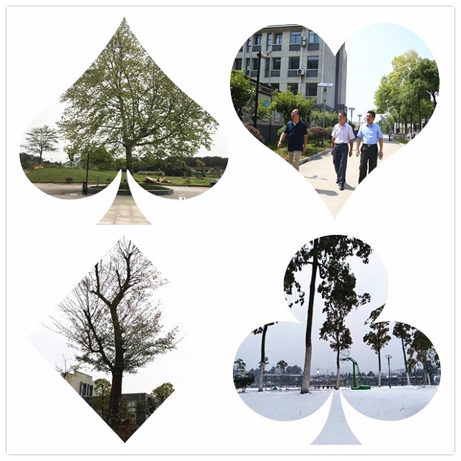 醫(yī)院廣場空曠整潔,廣場中央五星紅旗迎風招展。首先映入眼簾的是印證著四季分明的梧桐樹,排滿了整齊有序各款車輛的停車場。在進門東側公園的高處,有一棵名曰檫木的樹木,猶如士兵一樣,為三院站崗放哨;西北側一棵高大的,于2014年移植的榆樹,經(jīng)過四年的生長,如今已是枝繁葉茂,為三院抵御著冬季列列的寒風,鑄就三院溫暖的愛巢。