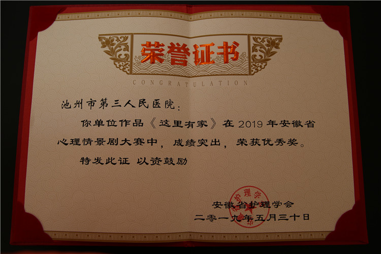 《這里有家》榮獲2019年安徽省心理情景劇大賽優(yōu)秀獎(jiǎng)(醫(yī)院)