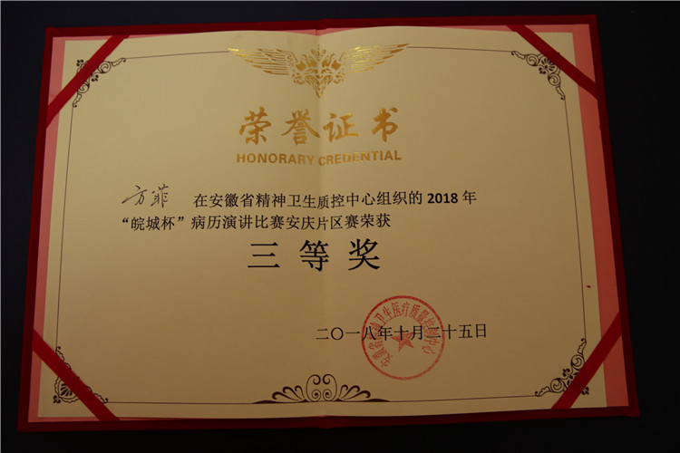 2018年“皖城杯”病歷演講比賽安慶片區(qū)三等獎(jiǎng)(方菲)