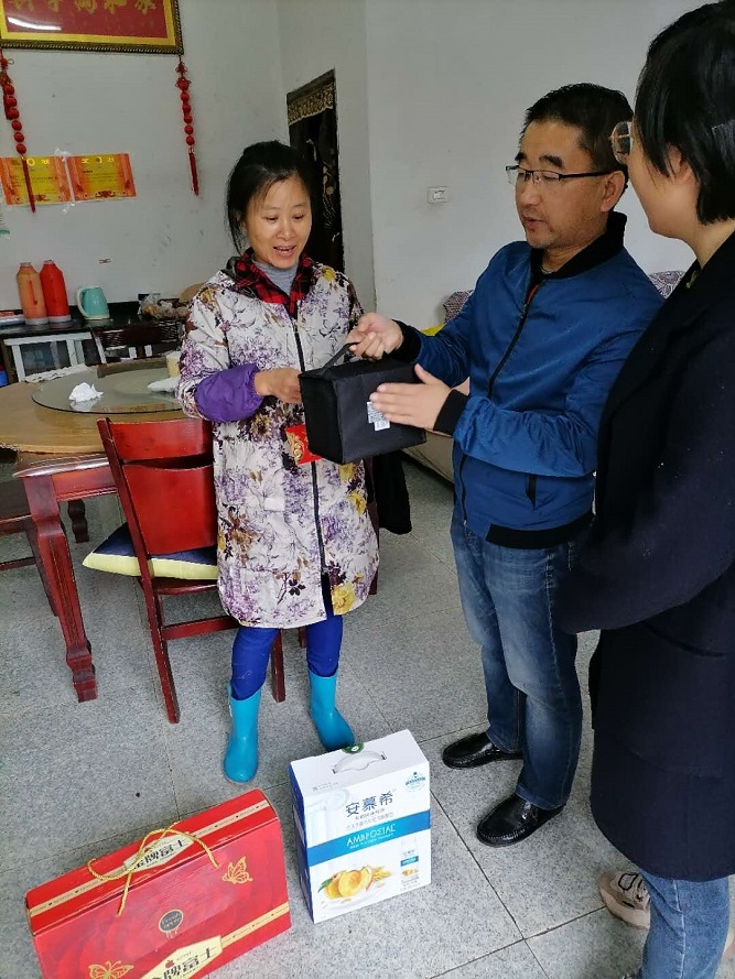 走訪中,童志禮分別和幫扶對(duì)象余德貴、余美清及其家人親切交談,詳細(xì)了解余德貴家庭因病返貧后的生活情況、病人身體恢復(fù)情況,詢(xún)問(wèn)了余美清聾啞的原因和治療的過(guò)程,對(duì)他們家庭的境況表示理解,鼓勵(lì)他們要相信黨和政府,樹(shù)立美好生活的信心,爭(zhēng)取早日脫貧。同時(shí)代表市三院對(duì)他們表示親切的慰問(wèn),為他們送去慰問(wèn)金和水果、牛奶等慰問(wèn)品。門(mén)診部還特別為余美清的大女兒贈(zèng)送了一套精美的馬克筆,激勵(lì)她努力學(xué)習(xí),勤奮上進(jìn)。