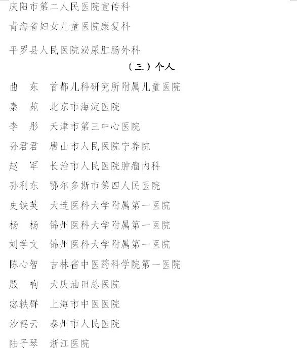 為發(fā)揮先進(jìn)典型的引領(lǐng)作用,推動(dòng)全國衛(wèi)生健康系統(tǒng)廣大干部職工更加積極投身改善醫(yī)療服務(wù)工作中,經(jīng)各地、各有關(guān)單位推薦,按照《關(guān)于印發(fā)進(jìn)一步改善醫(yī)療服務(wù)行動(dòng)計(jì)劃(2018-2020年)的通知》(國衛(wèi)醫(yī)發(fā)〔2017〕73號(hào)),國家衛(wèi)生健康委從改善醫(yī)療服務(wù)的5項(xiàng)工作制度和10項(xiàng)創(chuàng)新舉措等15個(gè)方面,對(duì)北京大學(xué)第三醫(yī)院等484家醫(yī)院,北京同仁醫(yī)院門診部476個(gè)科室、北京同仁醫(yī)院田瑋同志等443名個(gè)人(名單見附件)予以通報(bào)表揚(yáng)。其中池州市第三人民醫(yī)院獲先進(jìn)醫(yī)院表揚(yáng)(舉措九:以人文服務(wù)為媒介,構(gòu)建和諧醫(yī)患關(guān)系)。