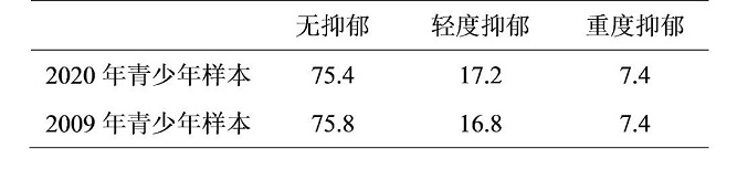 2020年青少年的抑郁檢出率為24.6%,其中,輕度抑郁的檢出率為17.2%,高出2009年0.4個(gè)百分點(diǎn)。重度抑郁為7.4%,與2009年保持一致。