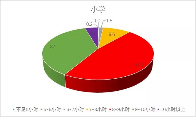 分學(xué)段的分析發(fā)現(xiàn)小學(xué)生的平均睡眠時(shí)長(zhǎng)為8.7個(gè)小時(shí),初中生為7.6個(gè)小時(shí),高中生為7.2個(gè)小時(shí)。
