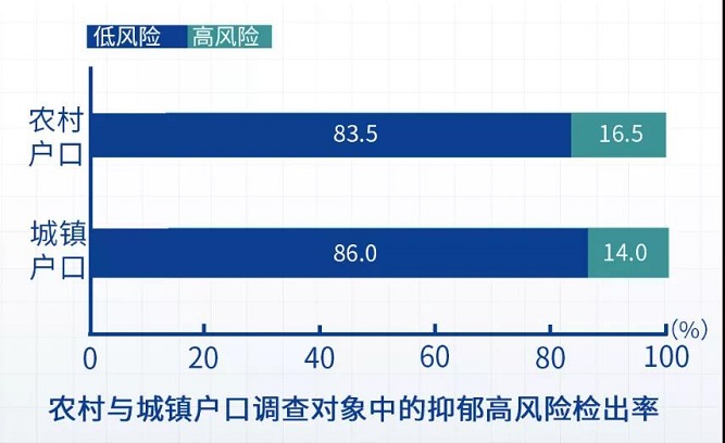 對(duì)戶(hù)口類(lèi)型不同的調(diào)查對(duì)象進(jìn)行分析,發(fā)現(xiàn)抑郁水平在統(tǒng)計(jì)上存在顯著差異。農(nóng)村戶(hù)口人群中抑郁高風(fēng)險(xiǎn)的檢出率為16.5%,略高于城鎮(zhèn)戶(hù)口的檢出率14.0%。