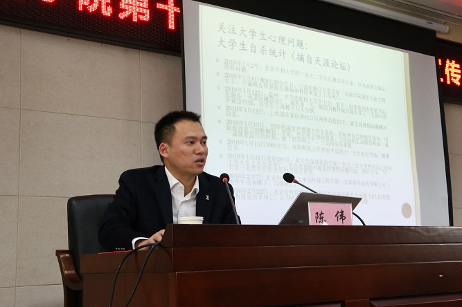 為推進池州學院第十七屆大學生心理健康月活動的開展,2021年4月28日下午,我院三病區(qū)主任、精神科主治醫(yī)師陳偉及心理咨詢師王鈺應池州學院心理健康機構(gòu)王雪飛主任的邀請,赴池州學院開展大學生常見精神疾病癥狀與識別的講座。講座由池州學院領(lǐng)導吳繼承主持。