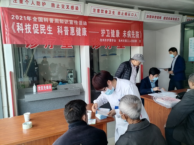 營造氛圍,大力宣傳健康科普知識。市三院利用2021年科普活動周的良好契機,對在院職工、患者及家屬進行健康科普講座,內(nèi)容涵蓋疫苗科普、手衛(wèi)生、戴口罩、血壓、血糖的監(jiān)測,降壓藥物的服用方法、家庭用藥安全等方面,并充分利用微信平臺,強化健康教育管理,定期發(fā)布疫情防控、應(yīng)急常識、慢病管理等多方面的健康知識。引導(dǎo)全院職工、患者及家屬將健康科普知識融入到工作和生活中,樹立健康的生活理念。
