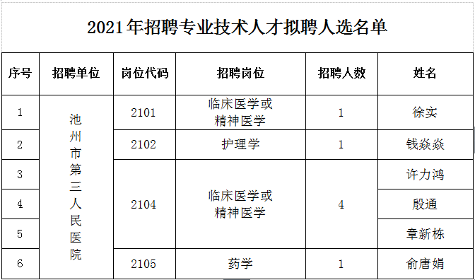 池州市第三人民醫(yī)院2021年招聘專業(yè)技術(shù)人才擬聘公示(一)