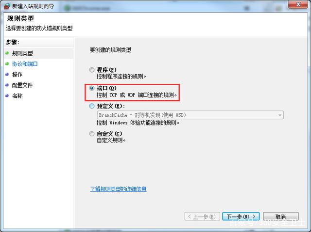 c.規(guī)則類型點(diǎn)擊端口,選擇下一步
