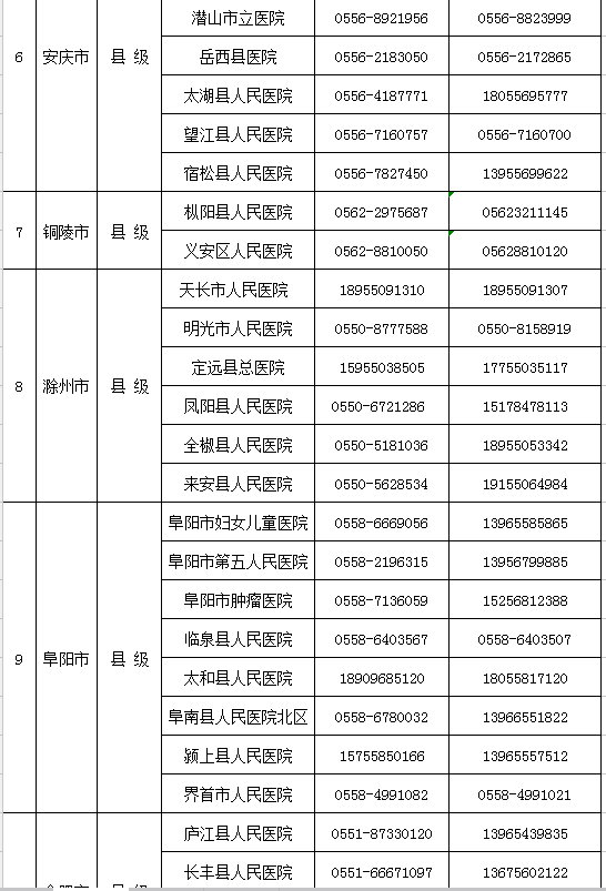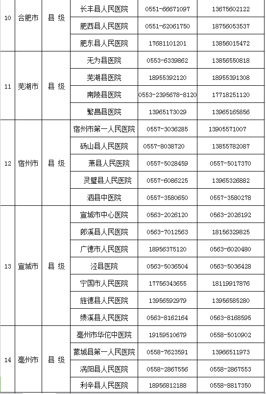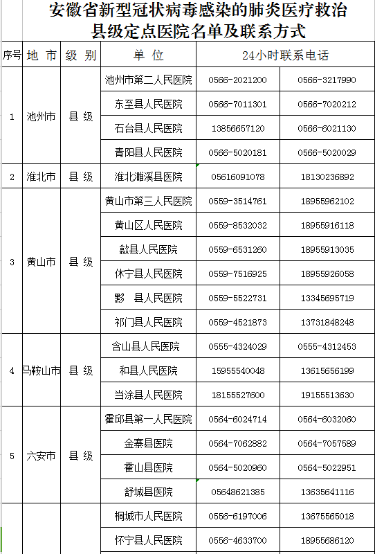 安徽省新型冠狀病毒感染的肺炎醫(yī)療救治縣級定點醫(yī)院名單及聯(lián)系方式
