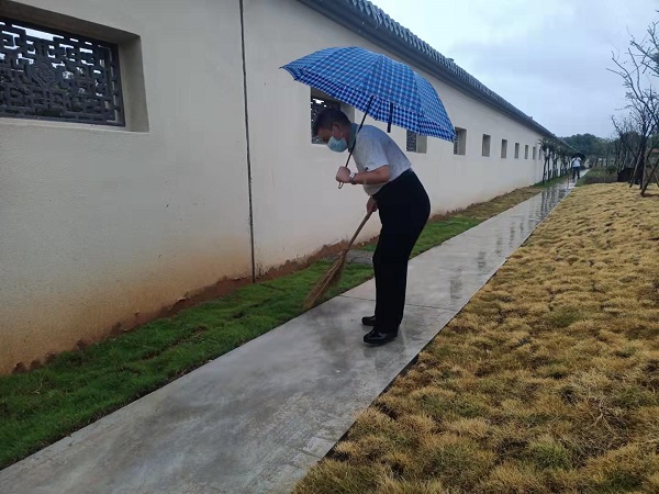 市三院唐達(dá)亮雨中開展環(huán)境整治工作