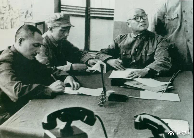 1949年11月1日起,人民解放軍向西南進(jìn)軍。圖為鄧小平與劉伯承、張際春等研究進(jìn)軍西南問題。
