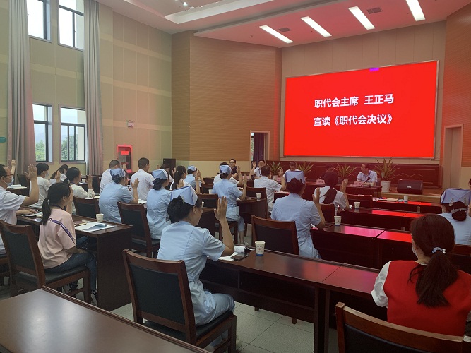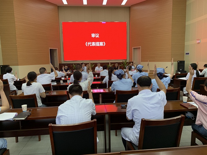 經(jīng)過大會審議、全體代表舉手表決,一致通過了醫(yī)院工作報告、職工代表提案等。