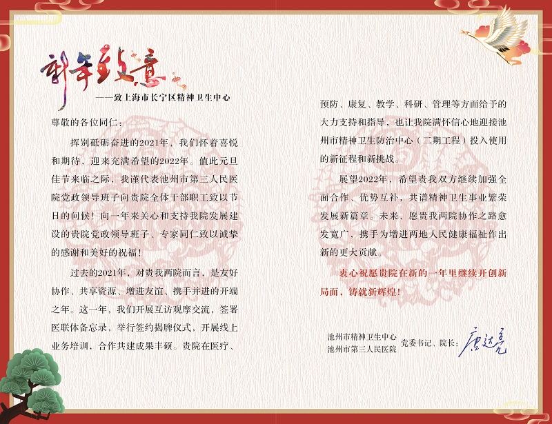 新年致意——致上海市長(zhǎng)寧精神衛(wèi)生中心