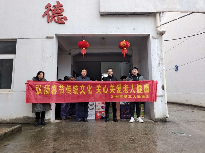 1月26日,市第三人民醫(yī)院副院長劉隆盛率領(lǐng)醫(yī)護業(yè)務(wù)骨干一行8人,赴涓橋、里山敬老院開展“弘揚春節(jié)傳統(tǒng)文化,關(guān)心關(guān)愛老人健康”義診慰問活動,在為老人們送上牛奶、面包、水果等慰問品的同時也送去了節(jié)日的問候和祝福。