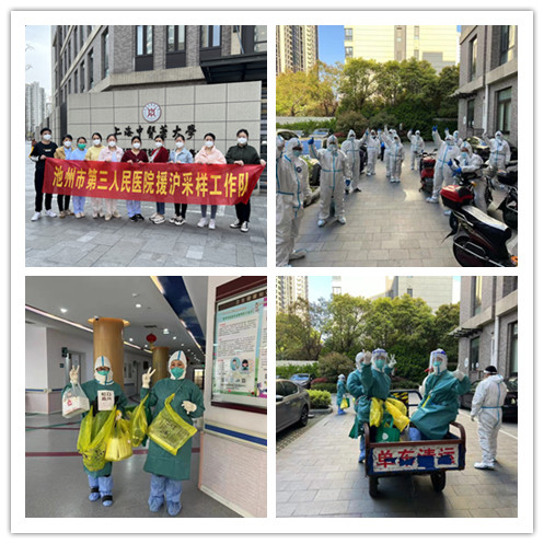 主動請纓,沖鋒在前——援滬行動迅速有力。在4月3日下午接到市衛(wèi)生健康委援滬通知后,市三院醫(yī)護人員紛紛響應(yīng),“我報名……我申請……”的呼聲在工作群內(nèi)此起彼伏。在最大限度保障院內(nèi)診療秩序的基礎(chǔ)上,院黨委在1小時內(nèi)完成了人員抽調(diào)和后備支援庫組建工作,于當晚迅速完成防護服穿脫、核酸采樣注意事項等相關(guān)知識再培訓(xùn),做好了整裝待發(fā)的充足準備。市三院援滬采樣工作隊也按照上級要求,于4月4日、9日、10日將上海當?shù)睾怂岵蓸庸ぷ饔袟l不紊地執(zhí)行到位,目前仍守候在一線隨時待命。