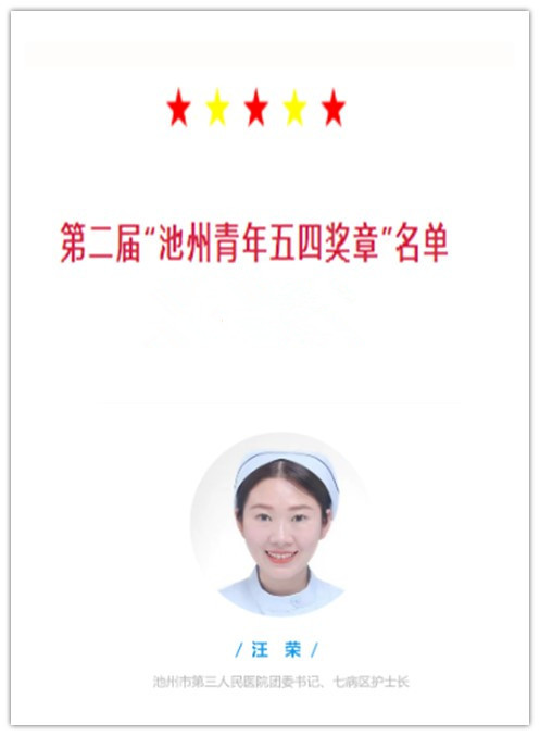 喜報(bào)!市第三人民醫(yī)院汪榮同志被授予第二屆“池州青年五四獎(jiǎng)?wù)隆?/h1>