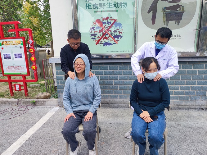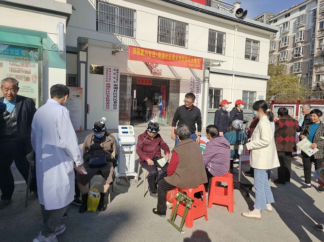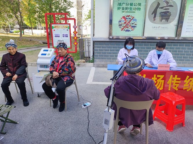 活動現(xiàn)場分別設(shè)置了健康咨詢、疼痛治療體驗和睡眠治療體驗等區(qū)域。在健康咨詢區(qū),全科醫(yī)師為老年人測量血壓,并為患有慢性病的老年人提供健康咨詢服務(wù);在疼痛治療體驗區(qū),康復(fù)治療師腰腿痛的老人開展推拿理療、電磁波治療等康復(fù)治療,有效緩解了老人們的疼痛癥狀;在睡眠治療體驗區(qū),老年心理科醫(yī)師通過腦循環(huán)治療儀對睡眠質(zhì)量不佳的老人進行睡眠干預(yù),改善睡眠狀況。