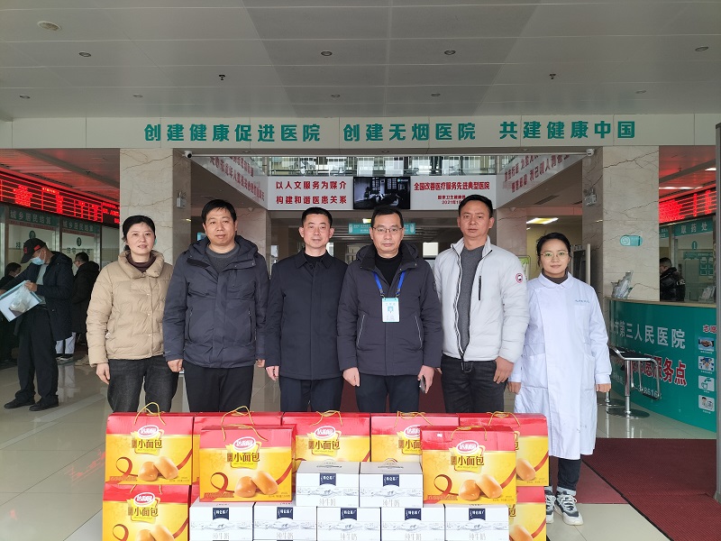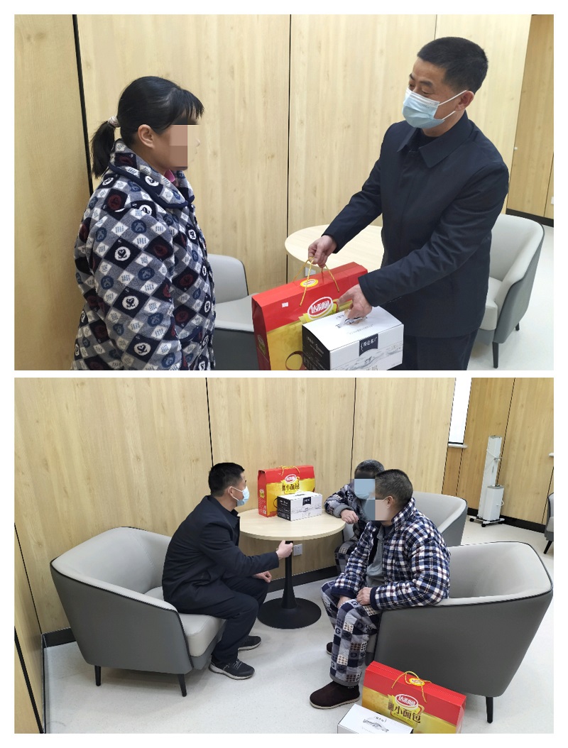 2月7日上午,九華鄉(xiāng)人民政府副鄉(xiāng)長嚴文忠?guī)ьI民政所、綜治辦等相關(guān)部門負責人一行5人來院慰問轄區(qū)內(nèi)住院精神障礙患者,為他們送來了牛奶、面包等慰問品,并向他們致以新春的祝福。副院長陳勝華及相關(guān)科室負責人陪同。
