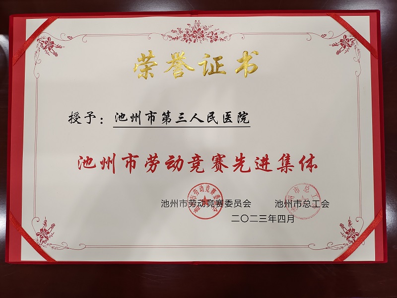 池州市第三人民醫(yī)院榮獲池州市勞動競賽先進集體榮譽稱號