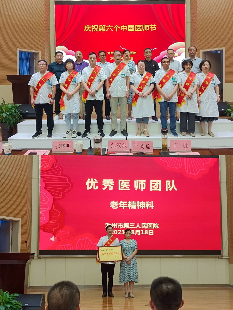 隨后,主持人宣讀了《池州市第三人民醫(yī)院關(guān)于表彰2023年度優(yōu)秀醫(yī)師團隊和優(yōu)秀醫(yī)師的通知》,老年精神科榮獲“優(yōu)秀醫(yī)師團隊”稱號、鄭漢波等8名醫(yī)師榮獲“優(yōu)秀醫(yī)師”稱號。通過表彰優(yōu)秀醫(yī)師團隊和優(yōu)秀醫(yī)師,進一步激勵廣大醫(yī)務(wù)人員學習典型、爭先創(chuàng)優(yōu),發(fā)揚“大醫(yī)精誠”精神,恪守“救死扶傷”職責,以良好的職業(yè)行為規(guī)范引領(lǐng)新時代醫(yī)者新風尚。