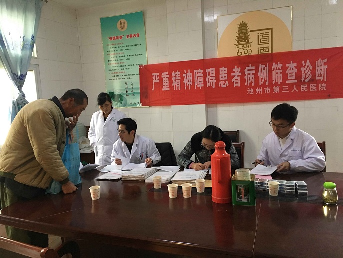 121,市三院專家組一行4人赴里山社區(qū)衛(wèi)生服務(wù)中心為轄區(qū)內(nèi)嚴(yán)重精神障礙患者診斷復(fù)核,貴池區(qū)衛(wèi)生計生委有關(guān)領(lǐng)導(dǎo)陪同。