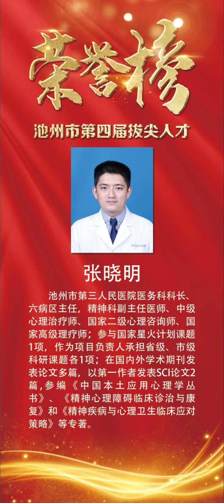 喜報!池州市第三人民醫(yī)院張曉明同志榮獲池州市第四屆“拔尖人才”稱號