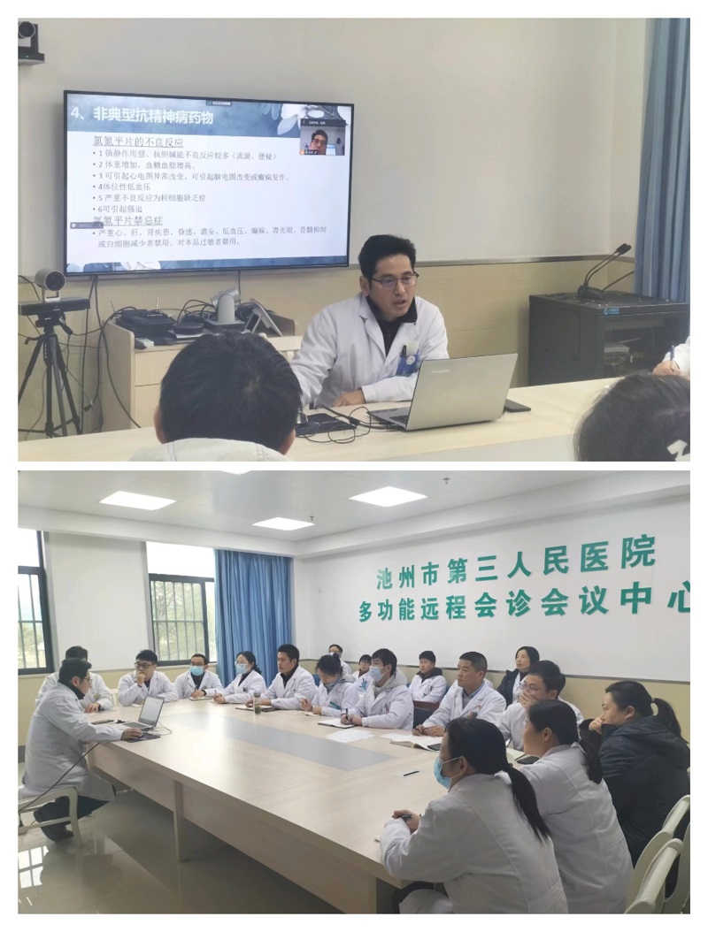 培訓(xùn)期間,池州市第三人民醫(yī)院精神副主任醫(yī)師、八病區(qū)主任王勝以常見(jiàn)抗精神病藥物為題,結(jié)合多年臨床經(jīng)驗(yàn),詳細(xì)講解了常見(jiàn)抗精神病藥物的臨床應(yīng)用和選藥原則。