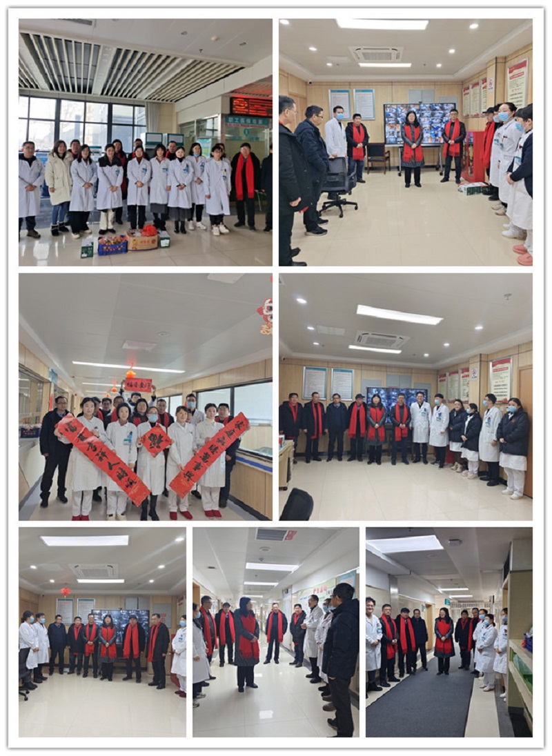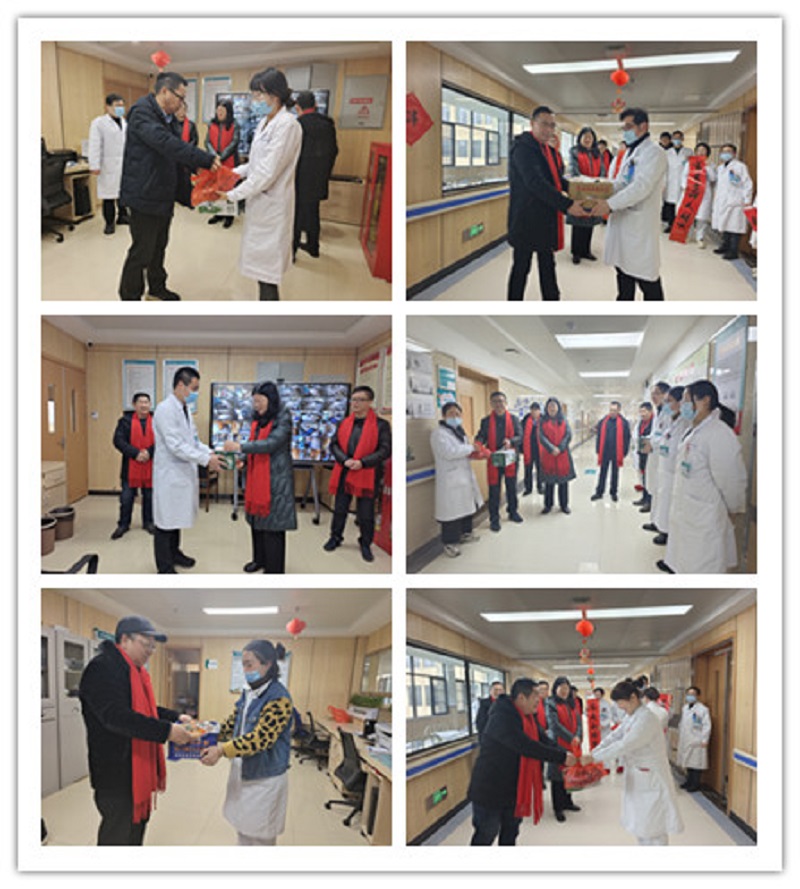新年將至,一歲又除。2月8日上午,黨委書(shū)記方東霞、院長(zhǎng)劉隆盛率班子成員深入住院病區(qū)、門(mén)診醫(yī)技、影像中心及物業(yè)、食堂、警務(wù)室,看望在各個(gè)崗位辛勤工作的值守人員,并送上精心準(zhǔn)備的水果、牛奶等慰問(wèn)品。