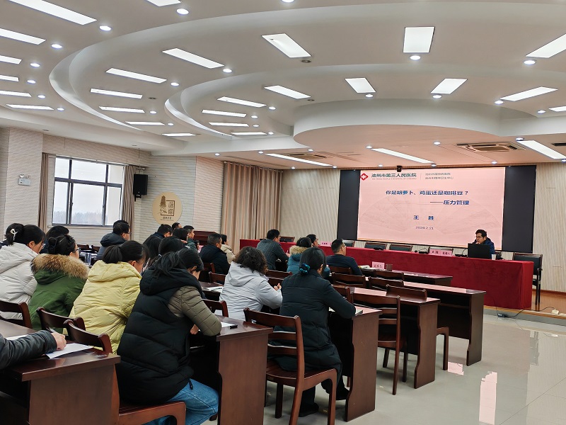 為進(jìn)一步提升檢察干警心理健康素養(yǎng),引導(dǎo)干警正確排解工作壓力,增強(qiáng)檢察隊(duì)伍的凝聚力和戰(zhàn)斗力。2月21日下午,應(yīng)貴池區(qū)檢察院邀請(qǐng),市三院八病區(qū)主任、精神科主任醫(yī)師王勝為全院50余名干警開展心理健康知識(shí)講座。
