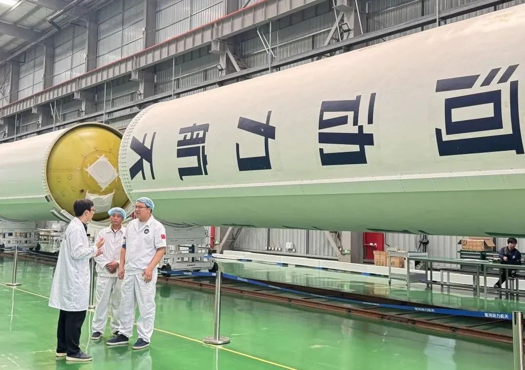 “目前,我們正在進行液體火箭首飛箭的總裝測試,預(yù)計今年底進行液體火箭首飛?!毙习貜娬驹谘b配車間里,指著一枚50米長的運載火箭,信心十足。