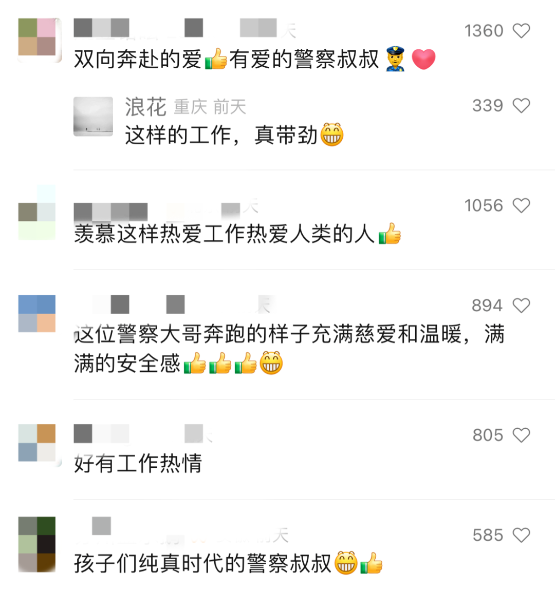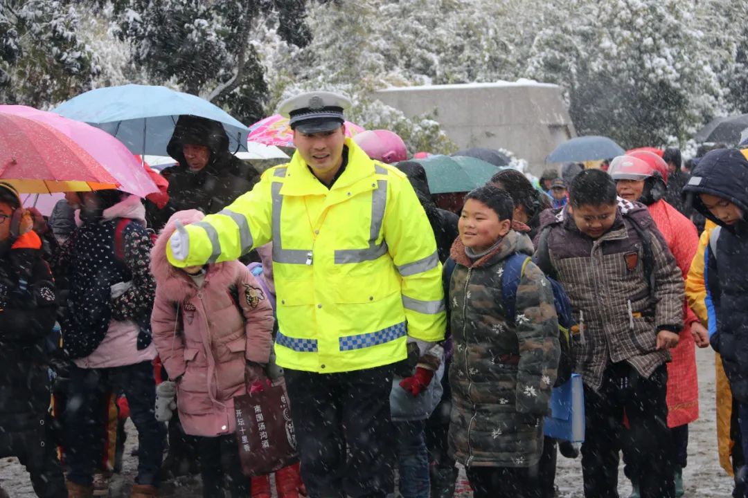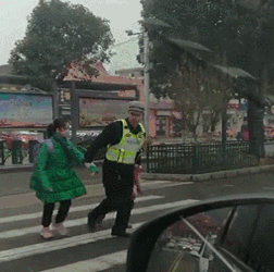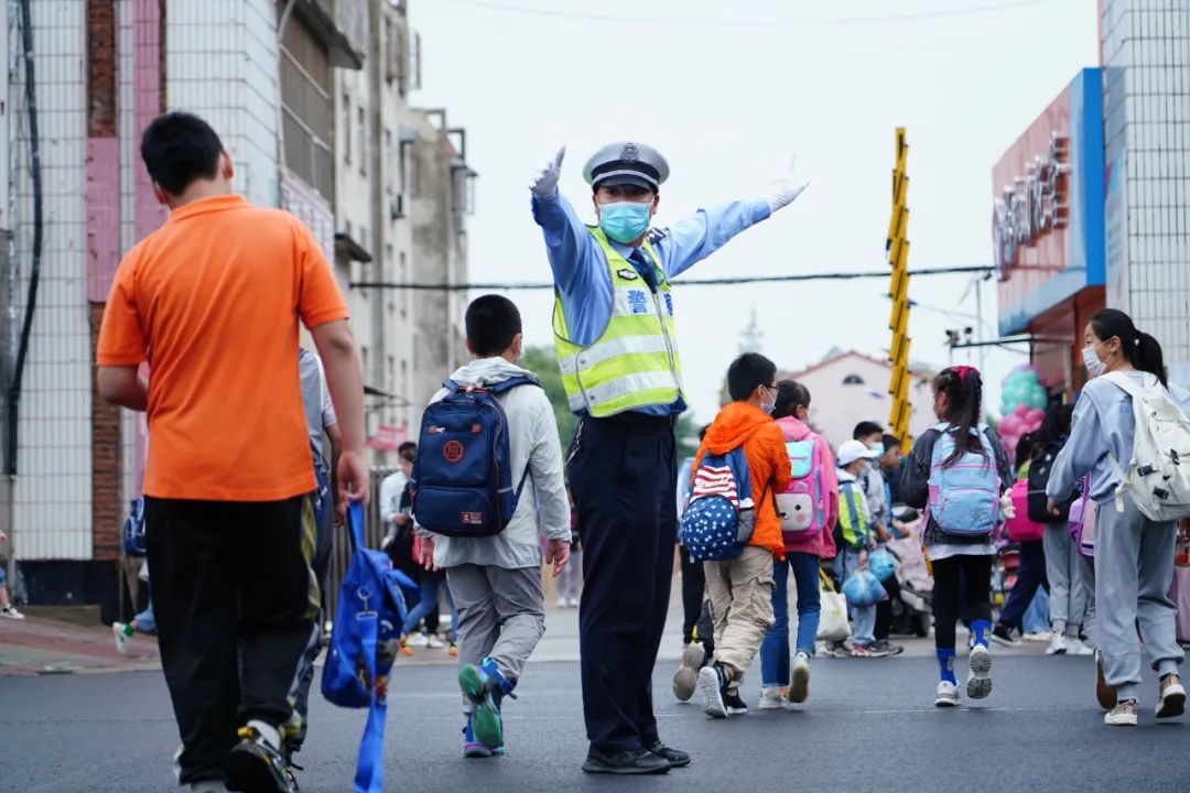 交警剛過馬路接上孩子