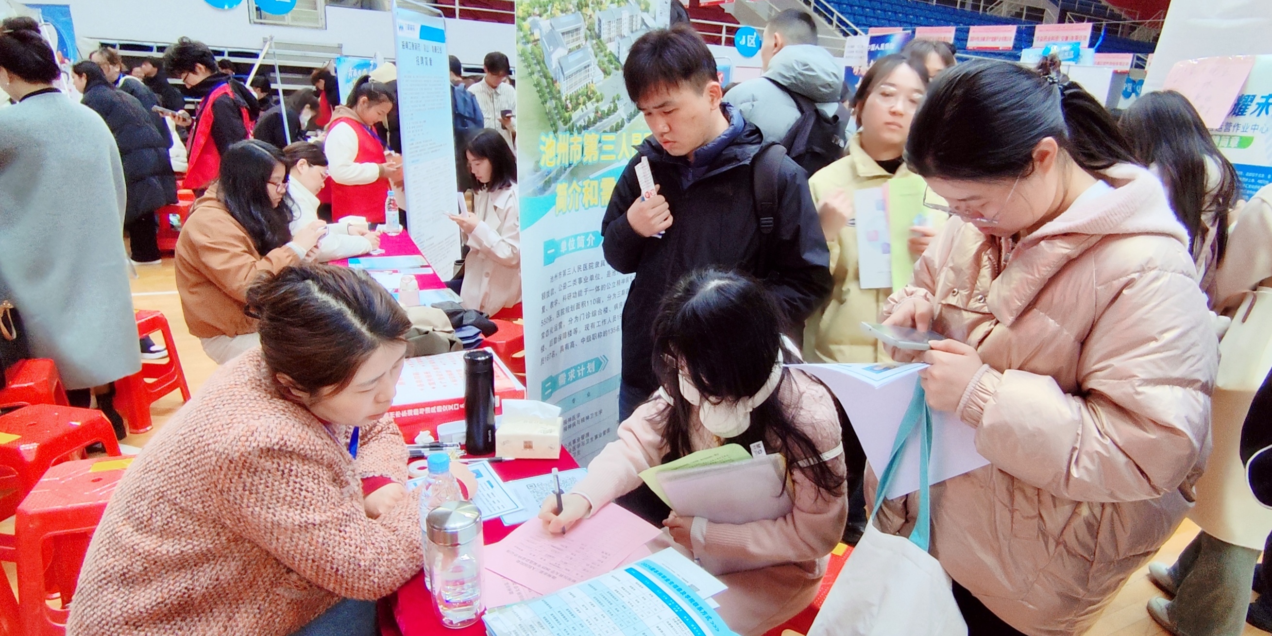315,人才興皖‘就’在江淮安徽省2025屆高校畢業(yè)生就業(yè)招聘會(huì)醫(yī)藥類專場(chǎng)招聘會(huì)(蚌埠站)在蚌埠龍湖體育館舉辦應(yīng)蚌埠醫(yī)科大學(xué)邀請(qǐng),市第三人民醫(yī)院黨委委員陳微等一行3人參加招聘會(huì)。