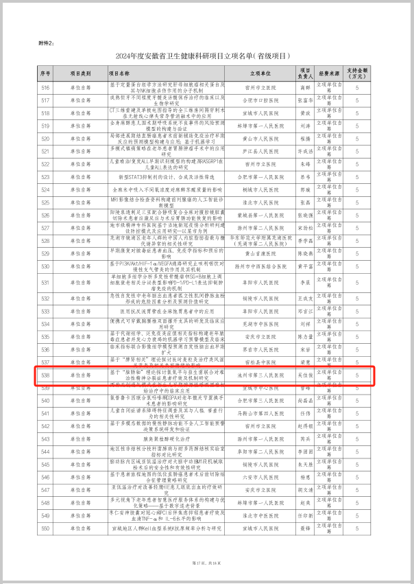 【喜報(bào)】我院又一項(xiàng)科研項(xiàng)目獲安徽省衛(wèi)生健康委科研立項(xiàng)
