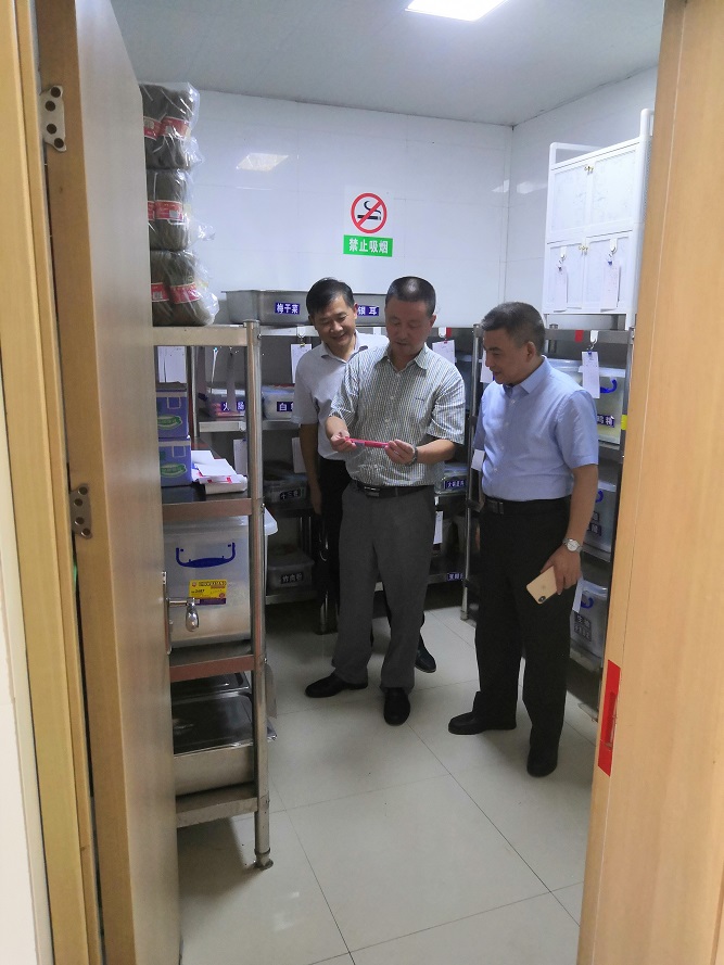 會(huì)后,曹先林局長(zhǎng)一行還不打招呼地對(duì)醫(yī)院食堂進(jìn)行了檢查。曹局長(zhǎng)一行認(rèn)真查看了食堂衛(wèi)生狀況、操作流程、菜品質(zhì)量、食品留樣、物資存儲(chǔ)等方面情況,對(duì)我院食堂的食品安全工作給予了充分肯定。