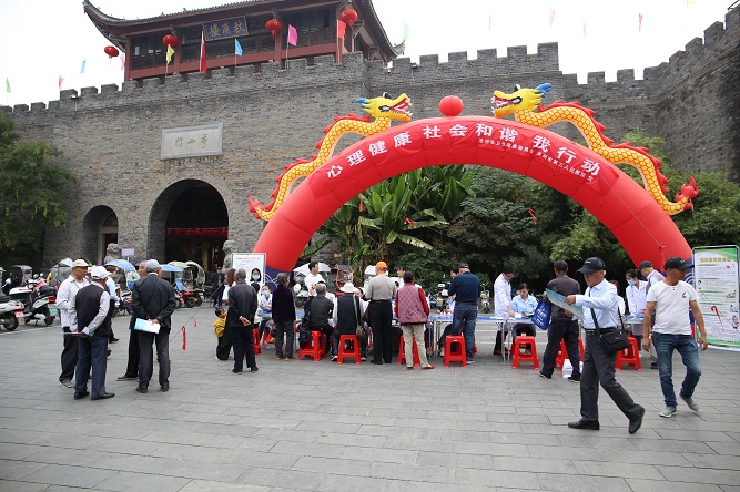 2019年10月10日是第28個(gè)“世界精神衛(wèi)生日”,當(dāng)天上午,由市衛(wèi)生健康委主辦,市三院承辦的以“心理健康社會(huì)和諧,我行動(dòng)”為主題的義診宣教活動(dòng)在秀山門(mén)廣場(chǎng)舉行,市三院相關(guān)專(zhuān)家及護(hù)理、宣教人員共9人參加活動(dòng),市衛(wèi)生健康委調(diào)研員路文敏,市三院黨委書(shū)記、院長(zhǎng)唐達(dá)亮現(xiàn)場(chǎng)指導(dǎo)。