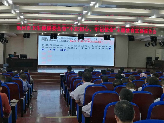 10月10日上午,市三院組織全院黨員干部20余人,在黨委書記、院長唐達亮的帶領(lǐng)下,在市人民醫(yī)院六樓會議室參加市衛(wèi)生健康委舉辦的“不忘初心,牢記使命”主題教育宣講報告會。