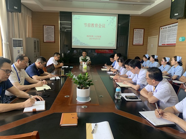 6月11日上午,市三院召開“端午”節(jié)前教育會(huì)議,醫(yī)院領(lǐng)導(dǎo)班子、全體中層以上干部40余人參加會(huì)議。黨委書記、院長唐達(dá)亮主持會(huì)議。